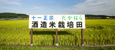 酒蔵の周辺は広々とした田園風景。その一部に十一正宗・たかはら酒造米栽培田があります。栽培するのは栃木県の代表的酒米「五百万石」他。